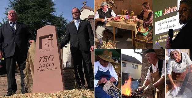 (hr)In Schönbrunn wird an diesem Wochenende das 750-jährige Bestehen des gleichnamigen Ortsteils der aus fünf Teilorten bestehenden Gemeinde gefeiert. Auf das offizielle Festbankett am Freitagabend folgten gestern und heute ein historisches Treiben und ein ausverkauftes Kirchenkonzert mit Feuerwerk.
