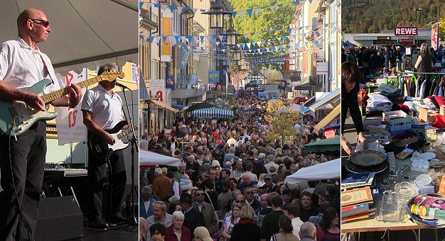 Eng ging es dann am heutigen Apfeltag in den Straßen und auf den (Park)Plätzen der Stadt zu. Die Verbindung von verkaufsoffenem Sonntag und buntem Straßenfest kam bei fast sommerlichem Wetter erneut bestens an und sorgte für einen Massenansturm. Um 12 Uhr eröffnete der Fanfarenzug das Fest, und Musik war auch am Nachmittag vielerorts zu hören, etwa von den "Gaiberger Musikanten", "Dileit", den "Riverside Gospel Singers", den "Rockefellers", "Blue Jeans" und "Sunny Side Up". Es gab Volkstanz, eine kleine Alpaka-Tierschau und jede Menge kulinarische Angebote mit und ohne Apfel. Bei der Polizei gastierte die Verkehrspuppenbühne, und im Hof stellten die Beamten neue Verkehrsmittel wie E-Bike und Segway vor. Auf dem Neuen Markt präsentierten sich erstmals Eberbacher Handwerksbetriebe. Die Einzelhandelsgeschäfte waren von 12.30 bis 17.30 Uhr geöffnet. Zudem kamen Flohmarktfans im evangelischen Gemeindehaus und auf dem REWE-Parkplatz auf ihre Kosten.
