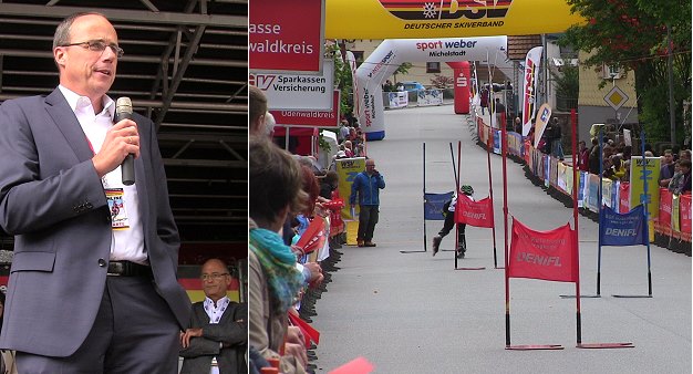 Vor diesem Hintergrund hatten die Athleten in Beerfelden an zwei Wettkampftagen in einem perfekten Umfeld Spitzensport vom Feinsten geboten. Das sah auch der hessische Innenminister Peter Beuth so. Der Schirmherr hatte die Deutschen Meisterschaften Ski-Inline 2015 höchstpersönlich eröffnet (Bild links). Er lobte das Format der Veranstaltung und das damit einhergehende ehrenamtliche Engagement. Beuth nutzte die Gelegenheit aber auch zu einem tagespolitischen Fingerzeig: „Mein Dank gilt in diesen Tagen der ganzen Sportfamilie. Denn sie hat zuletzt mit ihren Ehrenamtlichen, den Vereinen und Verbänden neben ihren sportlichen Aufgaben auch für die Aufnahme und Integration der Flüchtlinge Beachtliches geleistet."