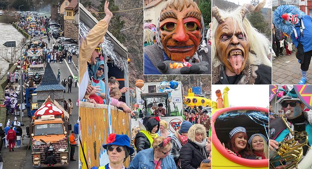 Mit dabei waren neben den Hirschhorner Vereinen “Ritter” und dem HCV “Lachsbachperle” auch Gruppen aus Eberbach (unter anderen von der KG Kuckuck und vom Club Eulenspiegel), Neckargemünd, Waldbrunn, Ober-Hainbrunn, Neckarsteinach, Oberzent und weiteren Orten der Umgebung. Musikalisch begleitet wurde der Umzug von der SFZ-Big-Band aus Waibstadt, der Katholischen Kirchenmusik Hirschhorn, dem Spielmannszug aus Lohrbach sowie Guggemusikgruppen aus Nußloch, Meimsheim, Gundelsheim und Wiesenbach.